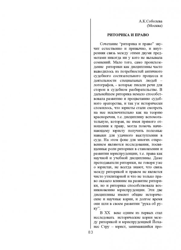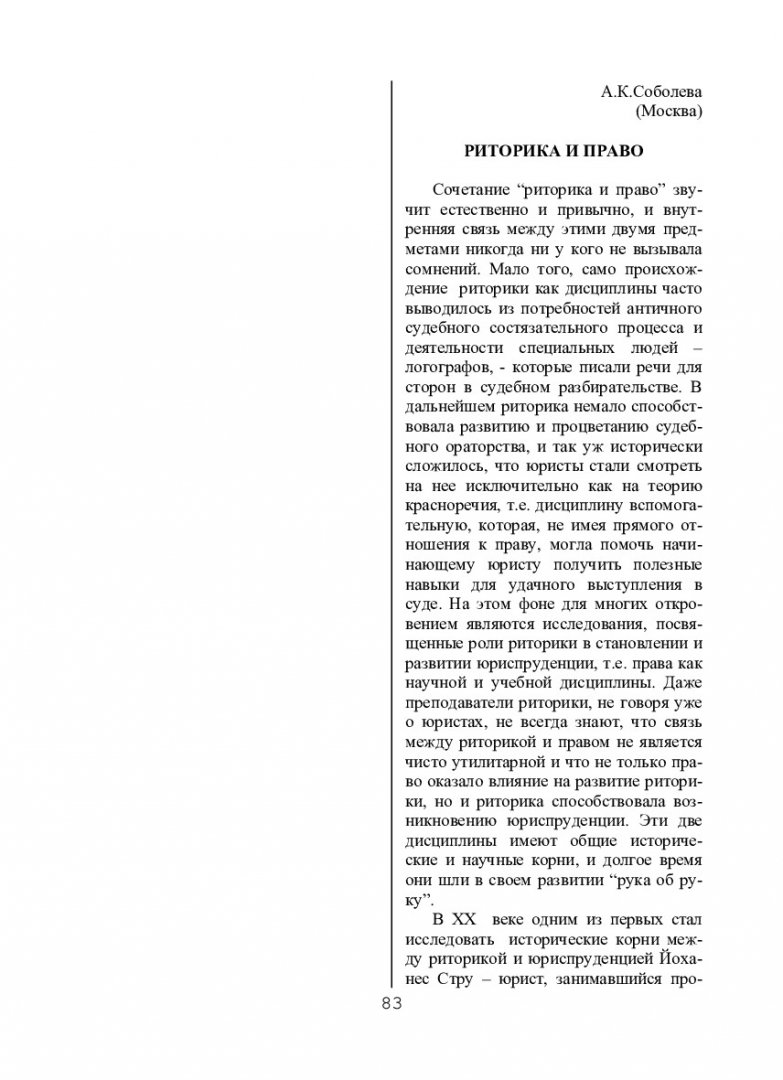 Соболева, А. К. Риторика и право / А. К. Соболева. - Текст : непосредственный // Речевое общение. - 2000. - Вып. 2 (10). - С. 83-90. - Библиогр. в конце ст. - ISSN 1682-3923.