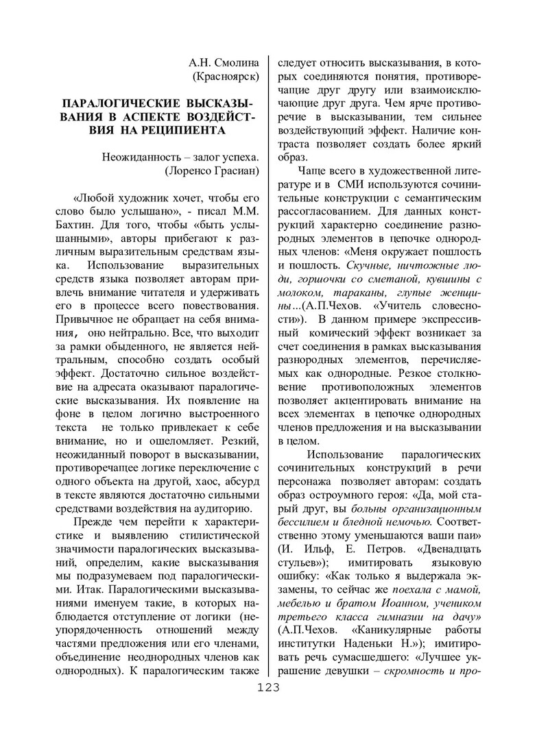 Смолина, А. Н. Паралогические высказывания в аспекте воздействия на реципиента / А. Н. Смолина. - Текст : непосредственный // Речевое общение. - 2000. - Вып. 3 (11). - С. 123-127. - Библиогр. в конце ст. - ISSN 1682-3923.