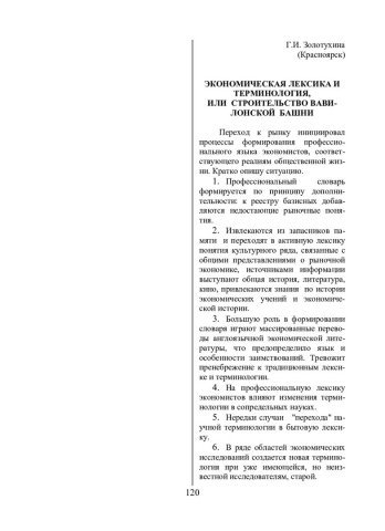 Библиографическое описание:Золотухина, Г. И. Экономическая лексика и терминология, или Строительство Вавилонской башни / Г. И. Золотухина. - Текст : непосредственный // Речевое общение. - 2002. - Вып. 4 (12). - С. 120-124. - Библиогр. в конце ст. - ISSN 1682-3923.