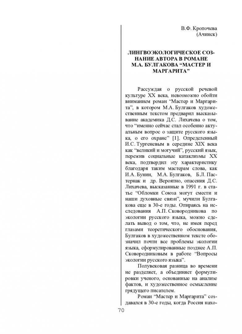 Библиографическое описание:Кропочева, В. Ф. Лингвоэкологическое сознание автора в романе М. А. Булгакова "Мастер и Маргарита" / В. Ф. Кропочева. - Текст : непосредственный // Речевое общение. - 2002. - Вып. 4 (12). - С. 70-76. - Библиогр. в конце ст. - ISSN 1682-3923.