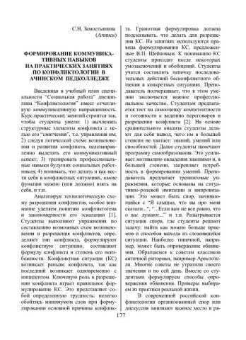 Библиографическое описание:Замостьянина, С. Н. Формирование коммуникативных навыков на практических занятиях по конфликтологии в Ачинском педколледже / С. Н. Замостьянина. - Текст : непосредственный // Речевое общение. - 2002. - Вып. 4 (12). - С. 177-178. - Библиогр. в конце ст. - ISSN 1682-3923.