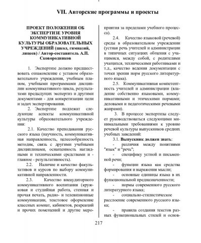 Проект положения об экспертизе уровня коммуникативной культуры образовательных учреждений (школ, гимназий, лицеев). - Текст : непосредственный // Речевое общение. - 2002. - Вып. 4 (12). - С. 217-230. - ISSN 1682-3923.