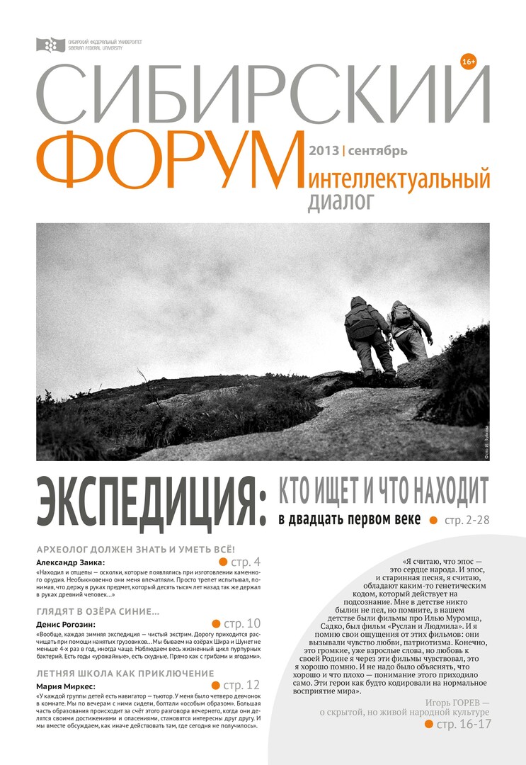 Сибирский форум. Интеллектуальный диалог : газета/ учред. Сиб. федер. ун-т. - Красноярск, 2009 - - 2022. - ISSN 2222-5552. - Выходит ежемесячно 2013г. Сентябрь (№ 4 (29), 17 сентября) Полный текст ( 9.1 Мб; PDF). Ресурс свободного доступа