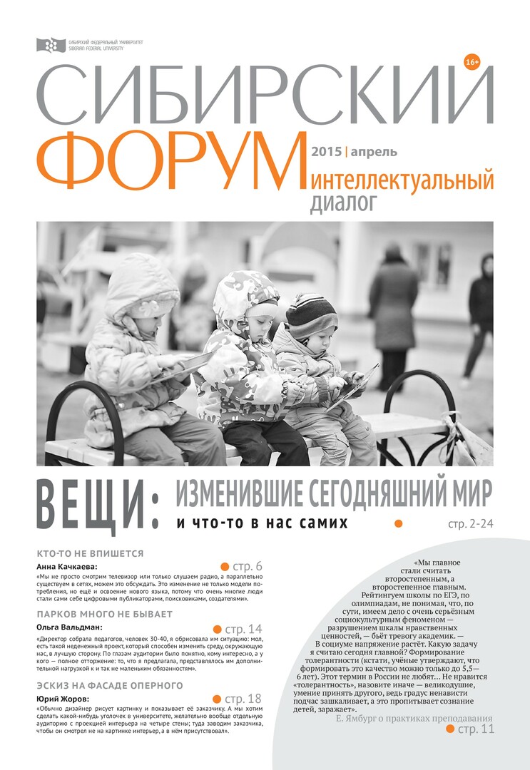 Сибирский форум. Интеллектуальный диалог : газета. 2015 г. Апрель (№ 3 (41), 23 апреля)