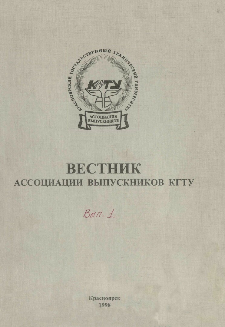 Библиографическое описание:Вестник Ассоциации выпускников КГТУ : сб. науч. тр./ Краснояр. гос. техн. ун-т ; ред. : А. А. Михеев, В. А. Кулагин. - Красноярск : ИПЦ КГТУ, 1998 - 1998г. Вып. 1