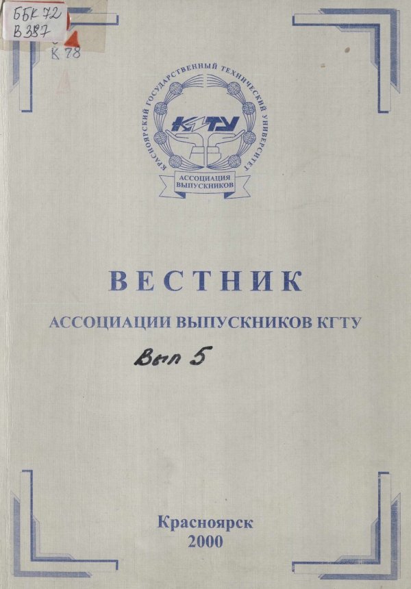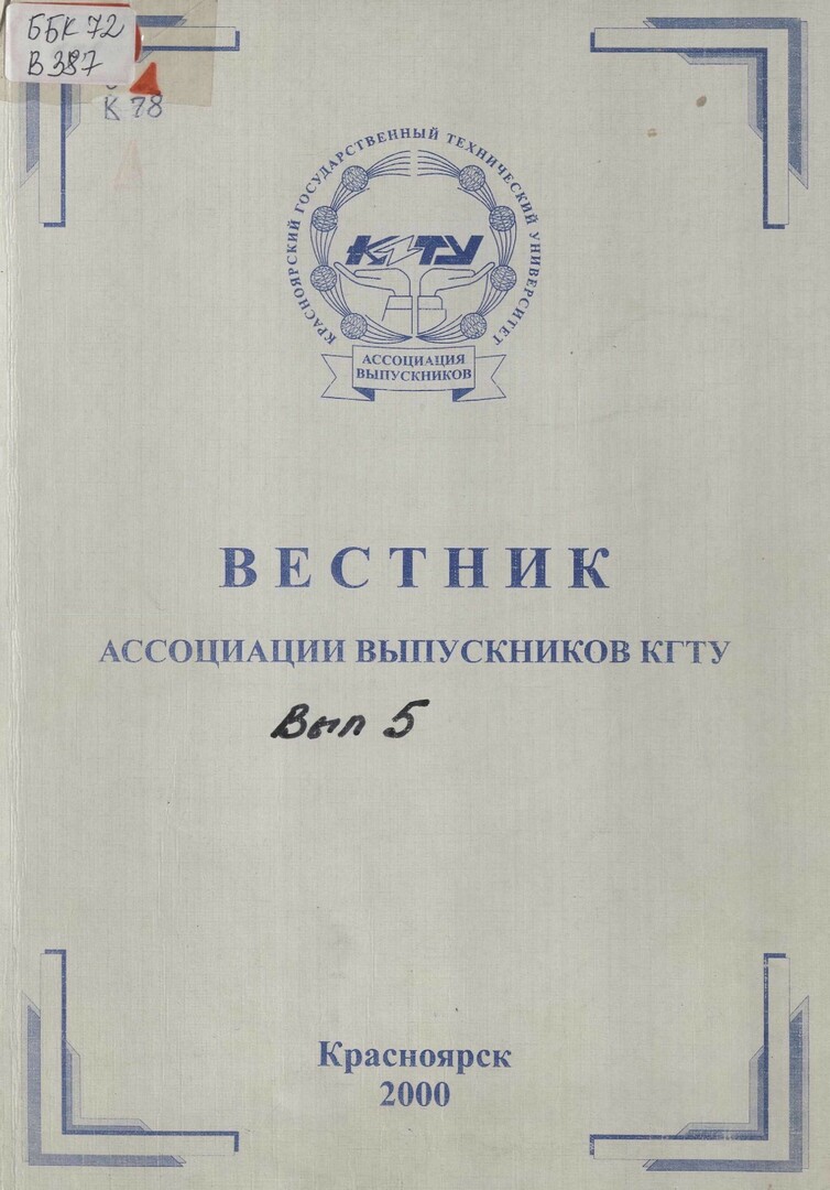 Библиографическое описание:Вестник Ассоциации выпускников КГТУ : сб. науч. тр./ Краснояр. гос. техн. ун-т ; ред. : А. А. Михеев, В. А. Кулагин. - Красноярск : ИПЦ КГТУ, 1998 - 2000г. Вып. 5