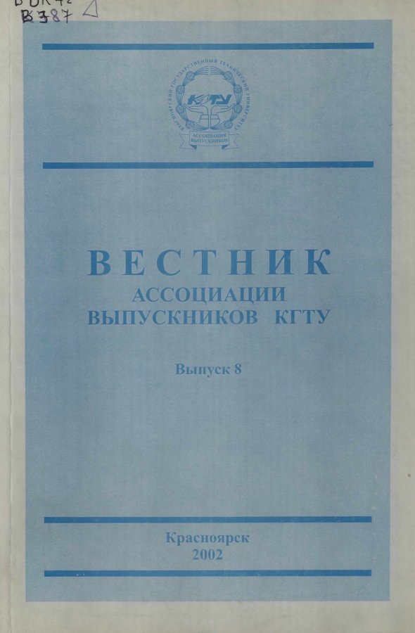Библиографическое описание:Вестник Ассоциации выпускников КГТУ : сб. науч. тр./ Краснояр. гос. техн. ун-т ; ред. : А. А. Михеев, В. А. Кулагин. - Красноярск : ИПЦ КГТУ, 1998 - 2002г. Вып. 8