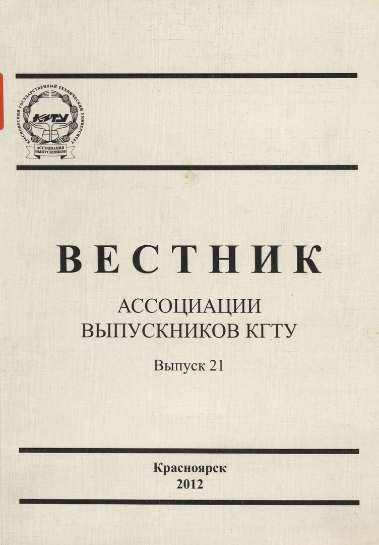Библиографическое описание:Вестник Ассоциации выпускников КГТУ : сб. науч. тр./ Краснояр. гос. техн. ун-т ; ред. : А. А. Михеев, В. А. Кулагин. - Красноярск : ИПЦ КГТУ, 1998 - 2012г. Вып. 21