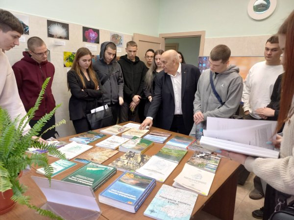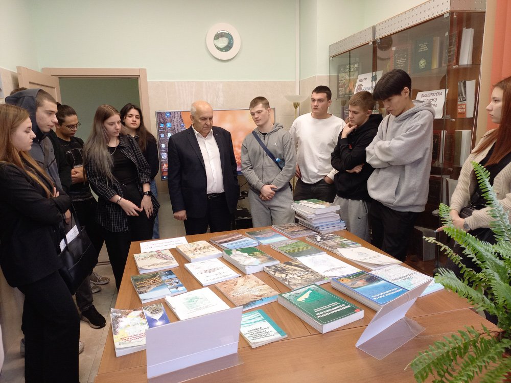 Сергей Станиславович поделился своим профессиональным опытом в области геологии, рассказал о наиболее значимых моментах, связанных с его участием в геологических экспедициях, а также о развитии своих научных исследований. Он представил студентам карту Красноярского края, на которой отмечены разведанные и перспективные месторождения полезных ископаемых. Также он провел краткий обзор своих научных трудов и более подробно остановился на монографии «Таймыро-Североземельская золотоносная провинция», изданной в 2025 году.