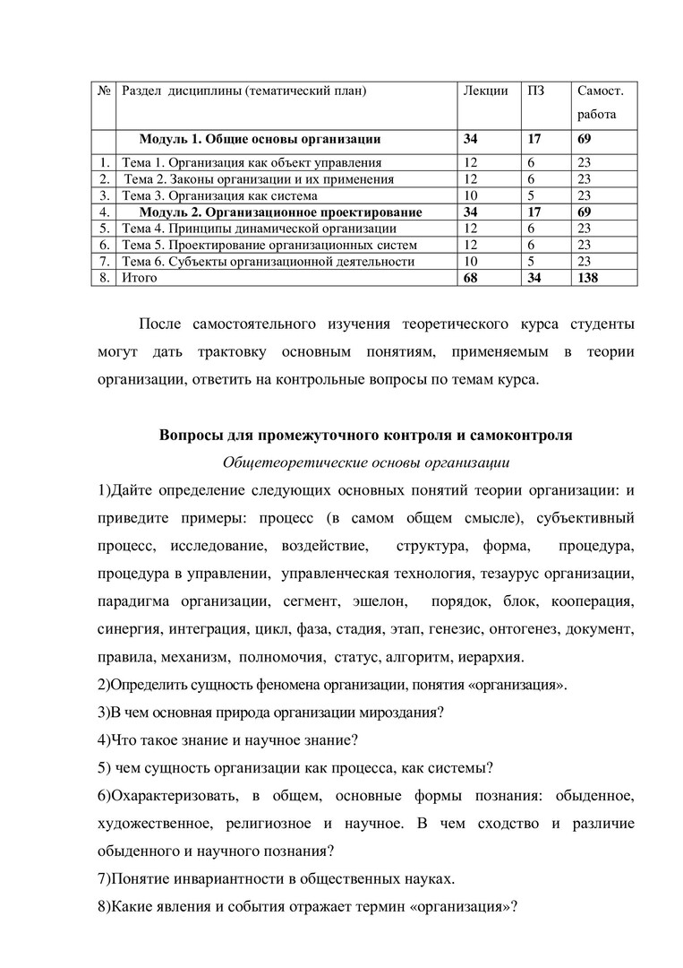 Ключевые слова:организационная деятельность, проектирование организационных систем, семинарские занятия, самостоятельные работы, учебно-методические пособия
