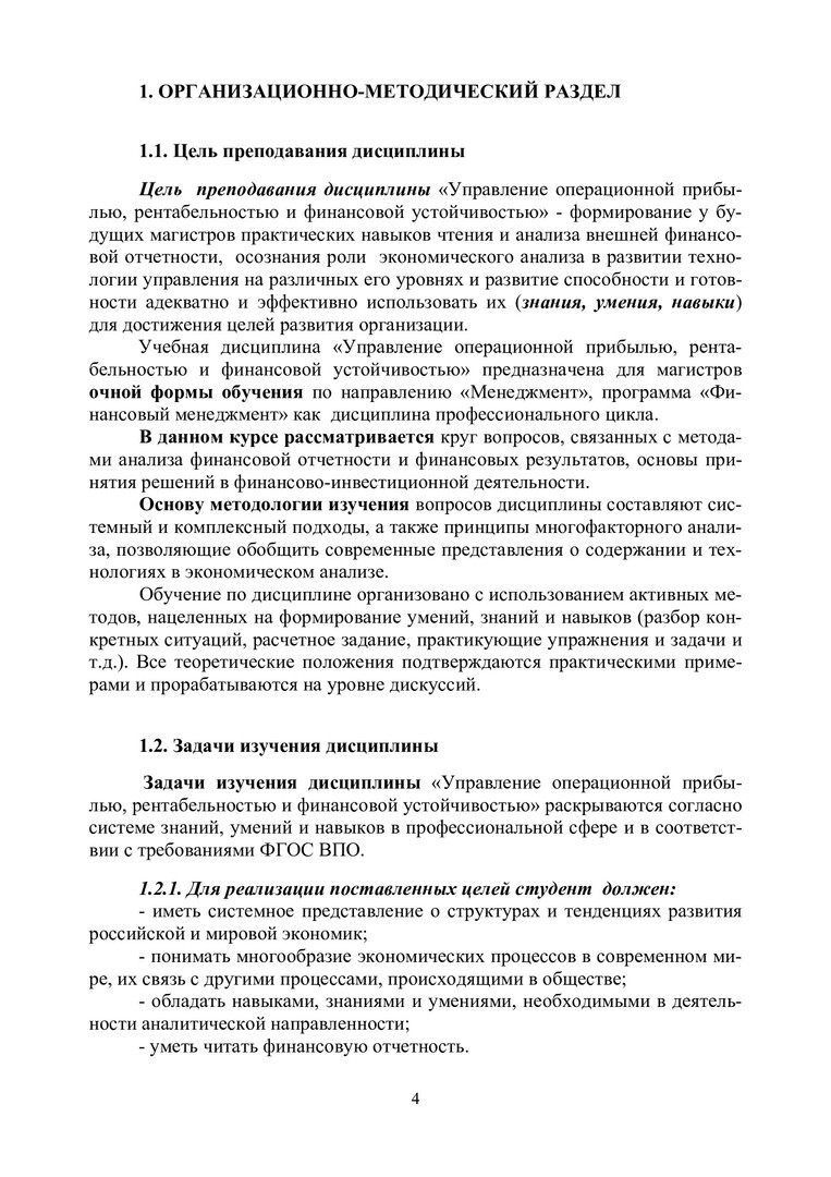 Управление операционной прибылью, рентабельностью и финансовой устойчивостью : учеб.-метод. пособие [для практич. занятий и самостоят. работы для студентов напр. 080200.68 «Менеджмент», программа 080200.68.13 «Финансовый менеджмент» очной формы обучения]