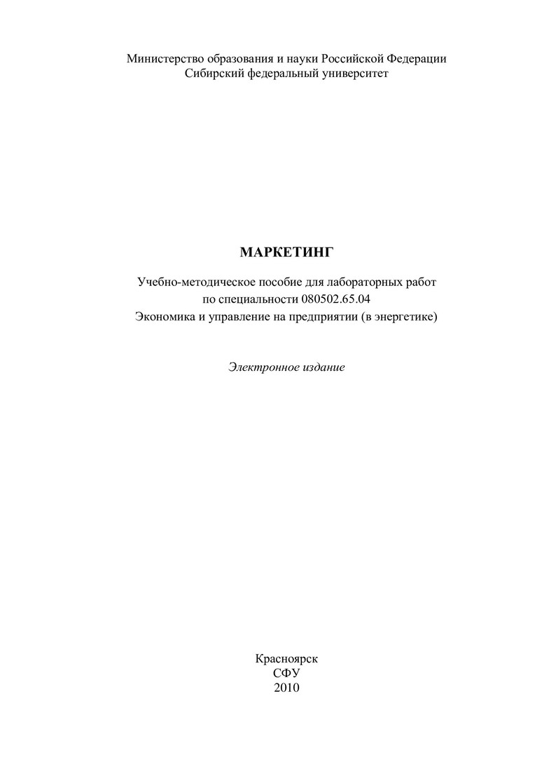 Маркетинг : учебно-методическое пособие для лабораторных работ [для студентов специальности 080502.65.04 "Экономика и управление на предприятии (в энергетике)"]