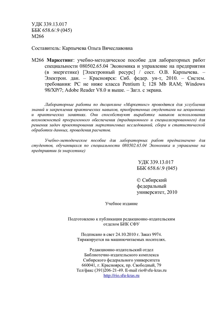 База данных:Каталог библиотеки СФУ (ББК65.29 М266)