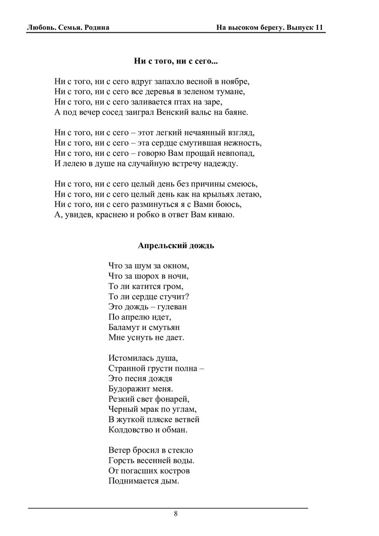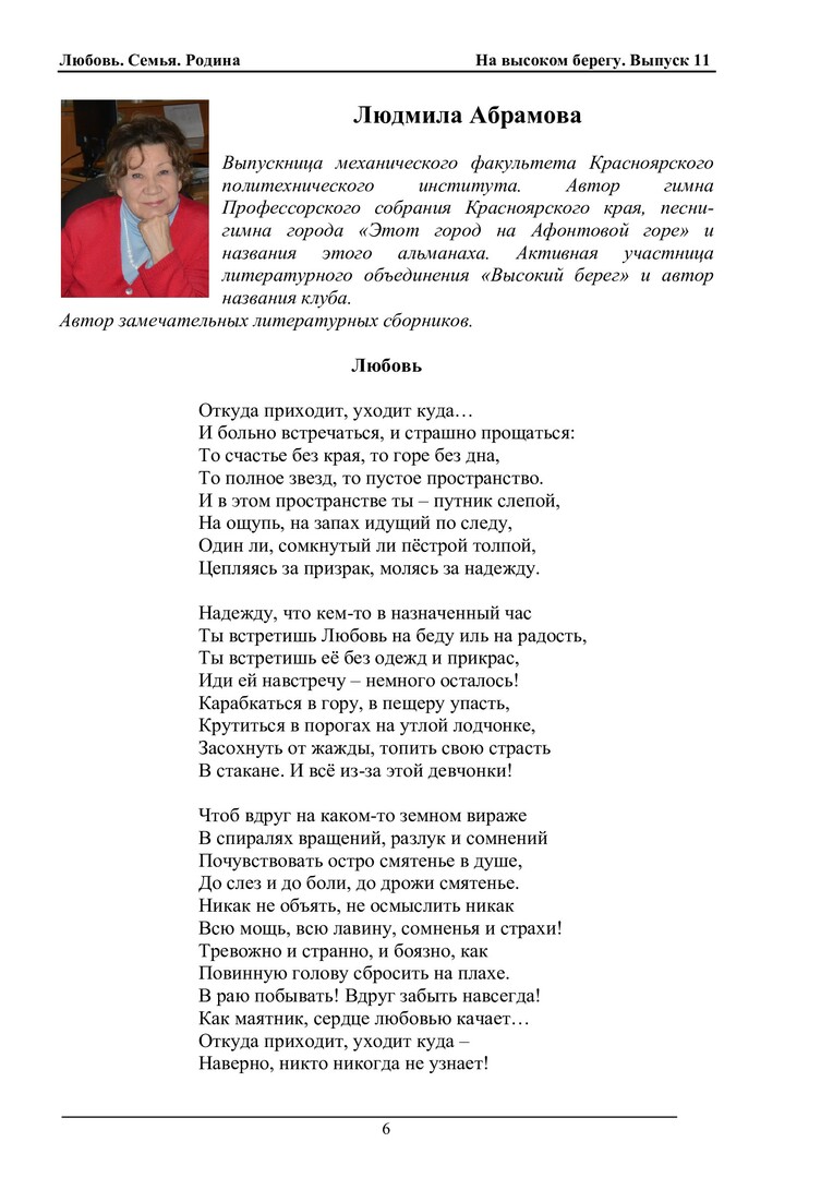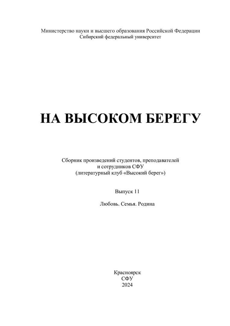 На высоком берегу : сборник произведений студентов, преподавателей и сотрудников СФУ (литературный клуб "Высокий Берег"). Вып. 11. Любовь. Семья. Родина