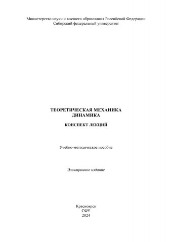 Библиографическое описание: Теоретическая механика. Динамика. Конспект лекций : учебно-методическое пособие / Сибирский федеральный университет, Институт цветных металлов ; сост.: Т. Г. Калиновская, А. И. Фоменко, И. А. Ремизов. - Электрон. текстовые дан. (3,1 Мб). - Красноярск : СФУ, 2024 (2024-04-15). - 145 с. - Загл. с титул. экрана. - Библиогр.: с. 145. - Изд. № 2024-21168 : Б. ц. - Текст : электронный.