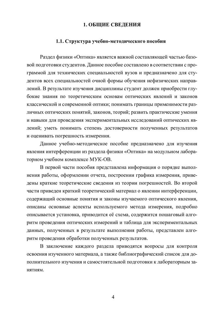 Ключевые слова: оптика, интерференция света, измерение физических величин, погрешности измерений, обработка результатов физических измерений, лабораторный учебный комплекс МУК-ОВ