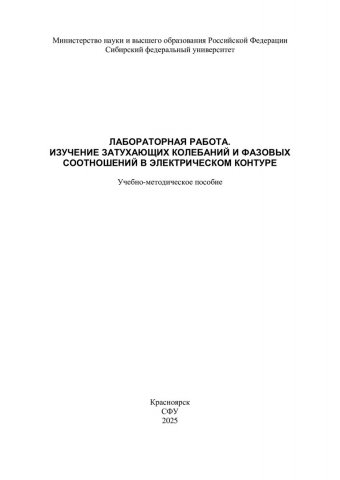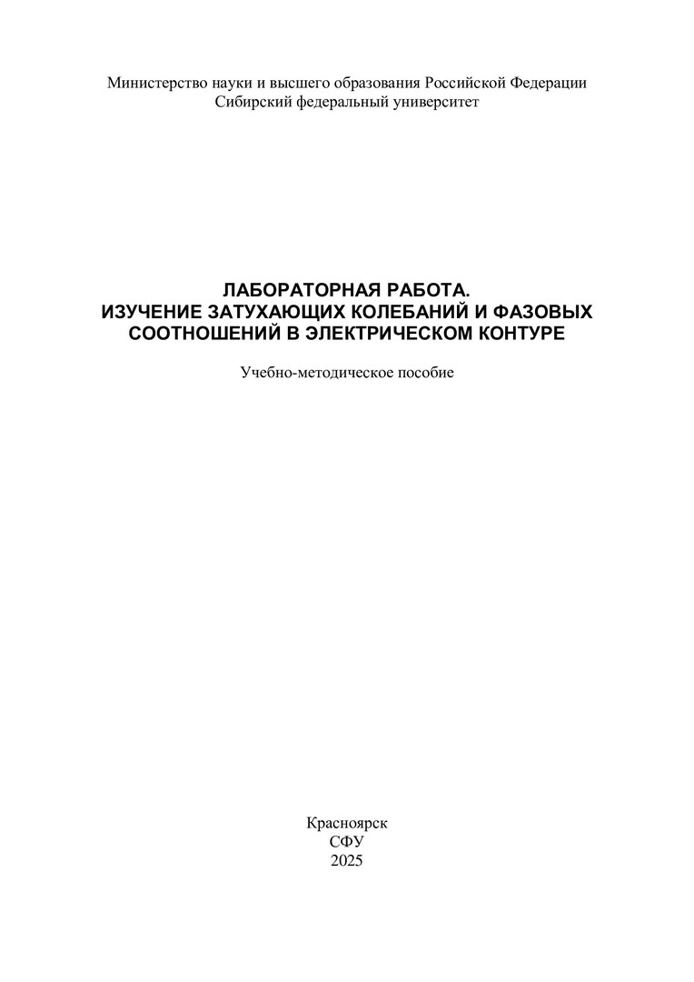 Библиографическое описание: Лабораторная работа. Изучение затухающих колебаний и фазовых соотношений в электрическом контуре : учебно-методическое пособие / Сибирский федеральный университет ; сост. А. Э. Соколов. - Электрон. текстовые дан. (pdf ; 1,3 Мб). - Красноярск : СФУ, 2025 (2025-03-05). - 24 с., 1.0 усл. печ. л. : ил., цв. ил., граф. - Загл. с титул. экрана. - Электрон. версия печ. публикации . - Библиогр.: с. 23. - 100 экз. - Изд. № 2025-23838 : Б. ц. - Текст : электронный.