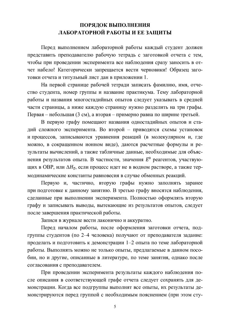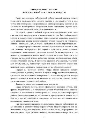 Аннотация: Изложены некоторые положения теоретической химии. Содержит методические указания к лабораторным работам, а также описание и объяснение свойств соединений. Представлены наиболее эффектные опыты, которые требуют для их объяснений глубоких теоретических знаний. Включает описание курсовой работы, при выполнении которой студент должен продемонстрировать знания и умения, приобретенные при прохождении практикума. Предназначено для организации образовательного процесса по программам бакалавриата 04.03.01 «Химия» и специалитета 04.05.01 «Фундаментальная и прикладная химия».