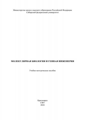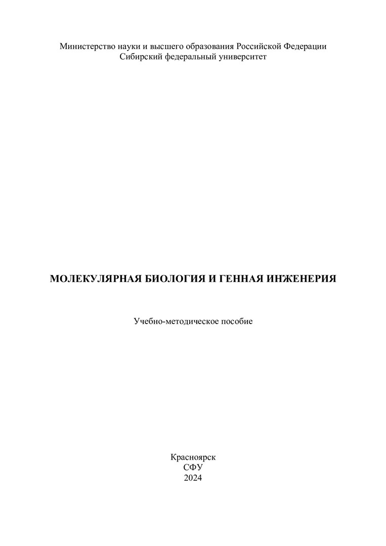 Библиографическое описание: Молекулярная биология и генная инженерия : учебно-методическое пособие / Сибирский федеральный университет, Институт фундаментальной биологии и биотехнологии ; сост.: Л. В. Степанова, О. А. Коленчукова, В. А. Кратасюк. - Электрон. текстовые дан. (0,5 Мб). - Красноярск : СФУ, 2024 (2024-11-22). - 28 с. : табл. - Загл. с титул. экрана. - Электрон. версия печ. публикации . - Библиогр.: с. 25-27. - 100 экз. - Изд. № 2024-23255 : Б. ц. - Текст : электронный.