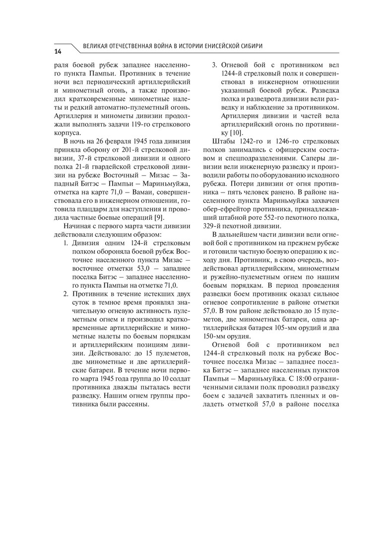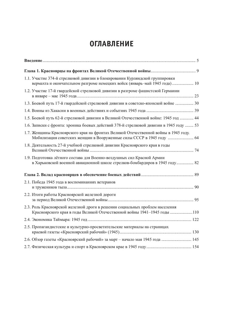 Ключевые слова:Красноярский край в годы Великой Отечественной войны, Великая Отечественная война, 1945 г., красноярцы на фронтах Великой Отечественной войны, 1945 г., стрелковые дивизии в сражениях Великой Отечественной войны, 1944 г., бои 17-й гвардейской стрелковой дивизии, 1945 г., бои 62-й стрелковой дивизии, 1945 г., деятельность 27-й учебной стрелковой дивизии Красноярского края, воспоминания ветеранов Великой Отечественной войны, Красноярская железная дорога, 1941-1945 гг., экономика Таймыра, 1945 г., газета "Красноярский рабочий", 1945 г.