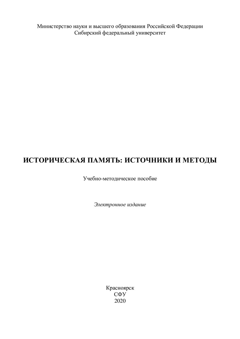 Аннотация:Курс «Историческая память: источники и методы» является дисциплиной государственного образовательного стандарта профессионального высшего образования по направлению подготовки 46.03.01 История «бакалавр», а также студентов других гуманитарных специальностей.
