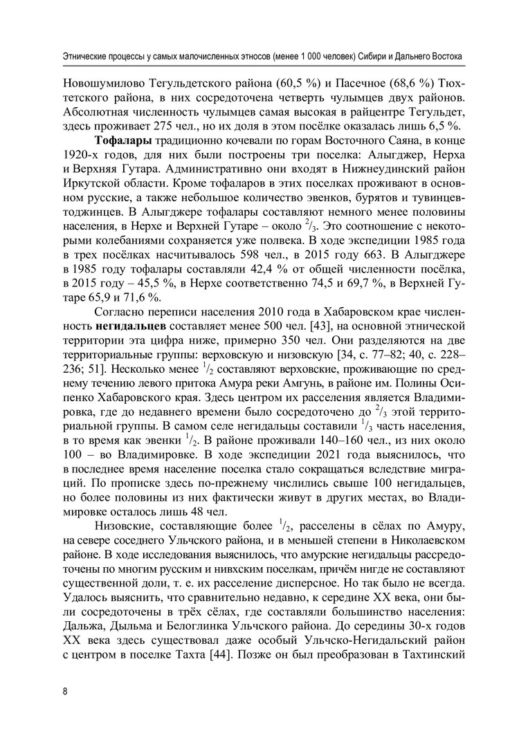Этнические процессы у самых малочисленных этносов (менее 1000 человек) Сибири и Дальнего Востока : монография