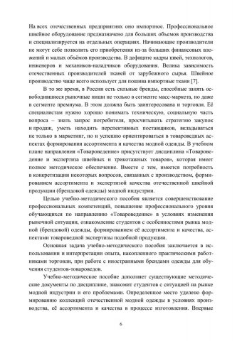 Аннотация: Содержит характеристику девяти отдельных тем дисциплины. При необходимости может быть использовано при преподавании одноимённой дисциплины как факультатива. Представлена характеристика состояния рынка модной индустрии в РФ, его проблем и перспектив развития. Дана классификация брендовой одежды и описаны все этапы её производства. Уделено внимание особенностям экспертизы брендовой одежды, а также организации работы в модной индустрии и проблемам совершенствования профессиональной подготовки её участников. Знания, полученные студентами при изучении данной дисциплины, позволят выпускникам ориентироваться в рыночной ситуации, а также овладеть тонкостями закупки и продажи брендовой одежды. Предназначено для организации образовательного процесса по программам бакалавриата 38.03.07 «Товароведение».