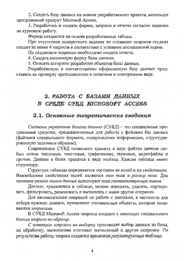Аннотация:Рассматриваются некоторые приемы работы в среде Microsoft Access. Даны основные теоретические сведения о программе, приемах работы, обработке и анализе данных, рекомендации по выполнению курсовой работы.