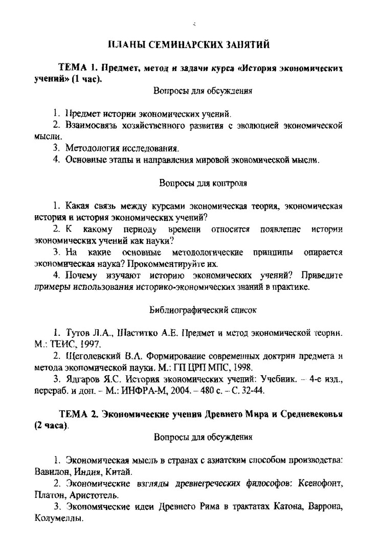 Экономическая теория. История экономических учений : метод. указ. к семинарским занятиям для студентов направления подгот. дипломир. спец. 660000 очной формы обучения