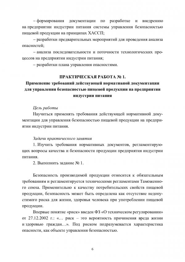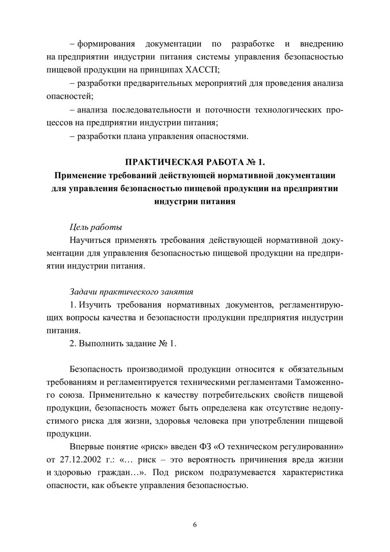 Ключевые слова:безопасность на предприятии, предприятия общественного питания, безопасность пищевой продукции, управление безопасностью на основе ХАССП, ХАССП на предприятиях питания, практические занятия