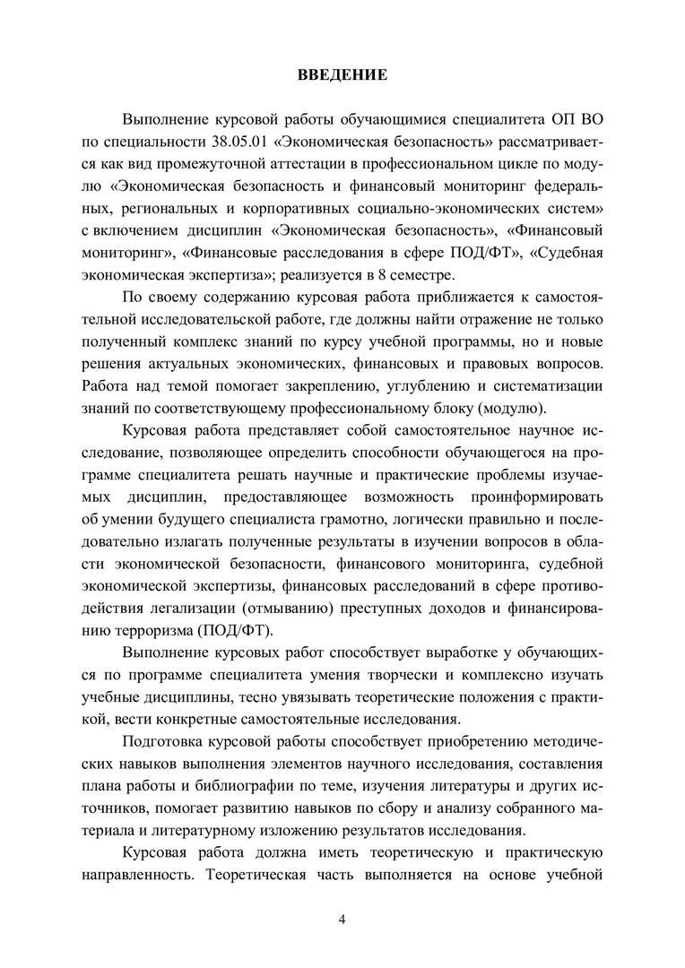 Выполнение курсовой работы по модулю "Экономическая безопасность и финансовый мониторинг федеральных, региональных и корпоративных социально-экономических систем" : учебно-методическое пособие