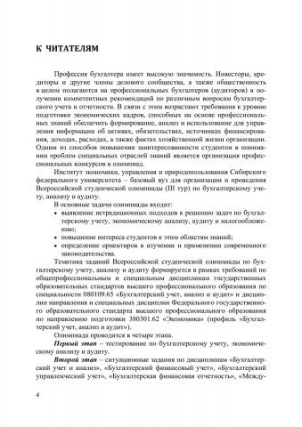 Аннотация: Представлены задания Всероссийской студенческой олимпиады по бухгалтерскому учету, анализу и аудиту. Задания в тестовой форме, задачи на эрудицию и кроссворды по бухгалтерскому учету сгруппированы по вариантам, ситуационные задачи – по содержанию дисциплин. Для самоконтроля приведены ответы на тесты и решения ситуационных задач. Предназначено для студентов высших учебных заведений, обучающихся по направлению подготовки 380301.62 «Экономика», профиль подготовки «Бухгалтерский учет, анализ и аудит».