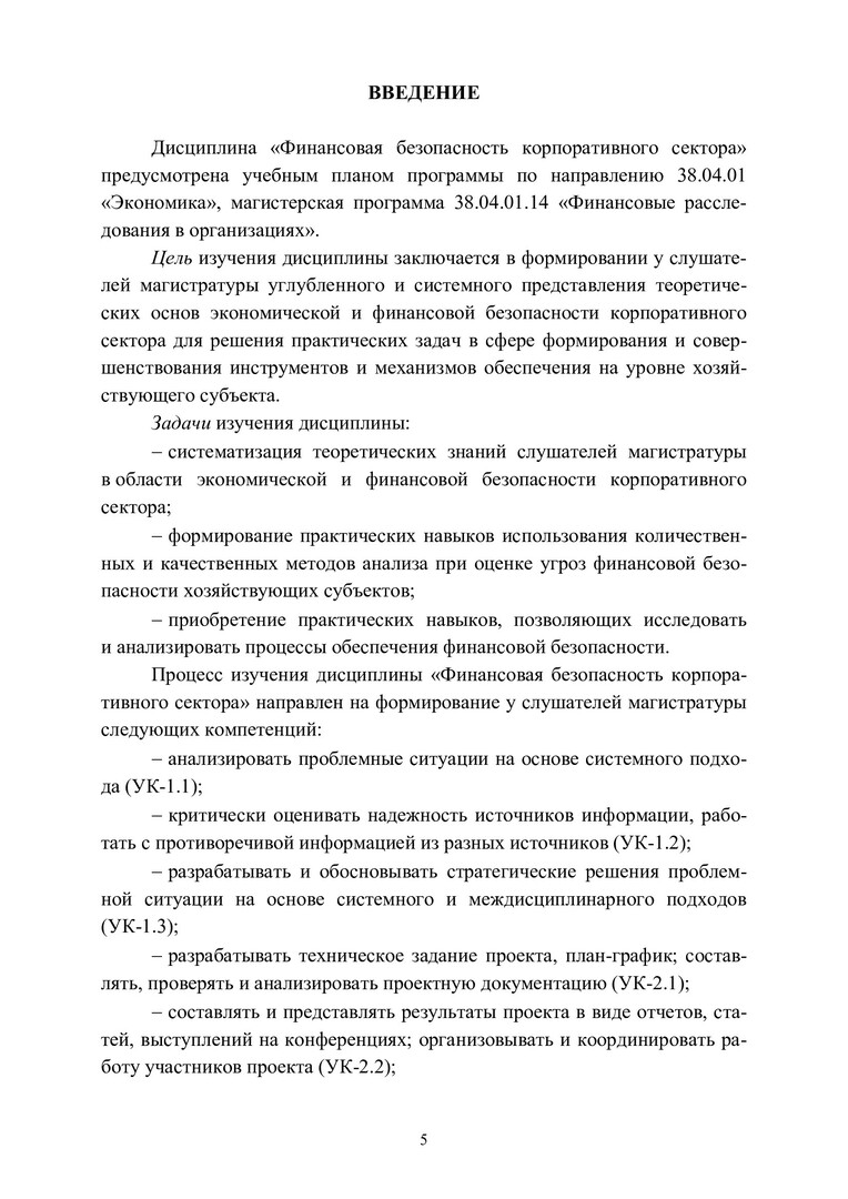 Финансовая безопасность корпоративного сектора: курс лекций : учебно-методическое пособие