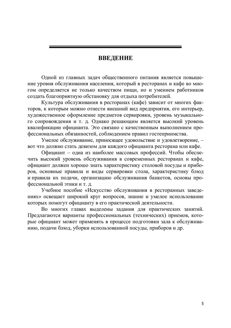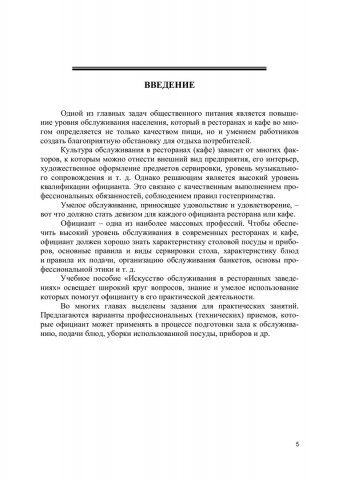Аннотация: Освещены вопросы организации обслуживания в современных ресторанах, барах, кафе. Дана характеристика столовой посуды, приборов и столового белья, приведены сведения о правилах и способах подачи блюд, закусок и напитков, сервировки стола. Рассмотрены особенности профессиональной подготовки официантов, организации их труда. К каждой главе предложены варианты практических заданий. Предназначено для студентов направлений подготовки «Гостиничное дело», «Технология продукции и организация общественного питания», изучающих дисциплины «Искусство обслуживания в ресторанных заведениях», «Основы искусства обслуживания», а также практических работников индустрии питания.