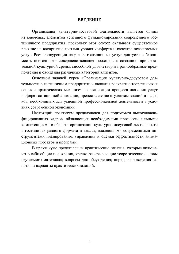 Аннотация:Посвящен изучению основных аспектов организации культурно-досуговой деятельности в гостиничных предприятиях. В ходе занятий рассматриваются концепции построения структурных подразделений, принципы анализа потребностей клиентов, методики разработки и внедрения программ культурно-досуговых мероприятий, использование инновационных технологий и оценка результатов проведенных мероприятий. Предназначен для организации образовательного процесса по программам бакалавриата направления подготовки «Гостиничное дело».