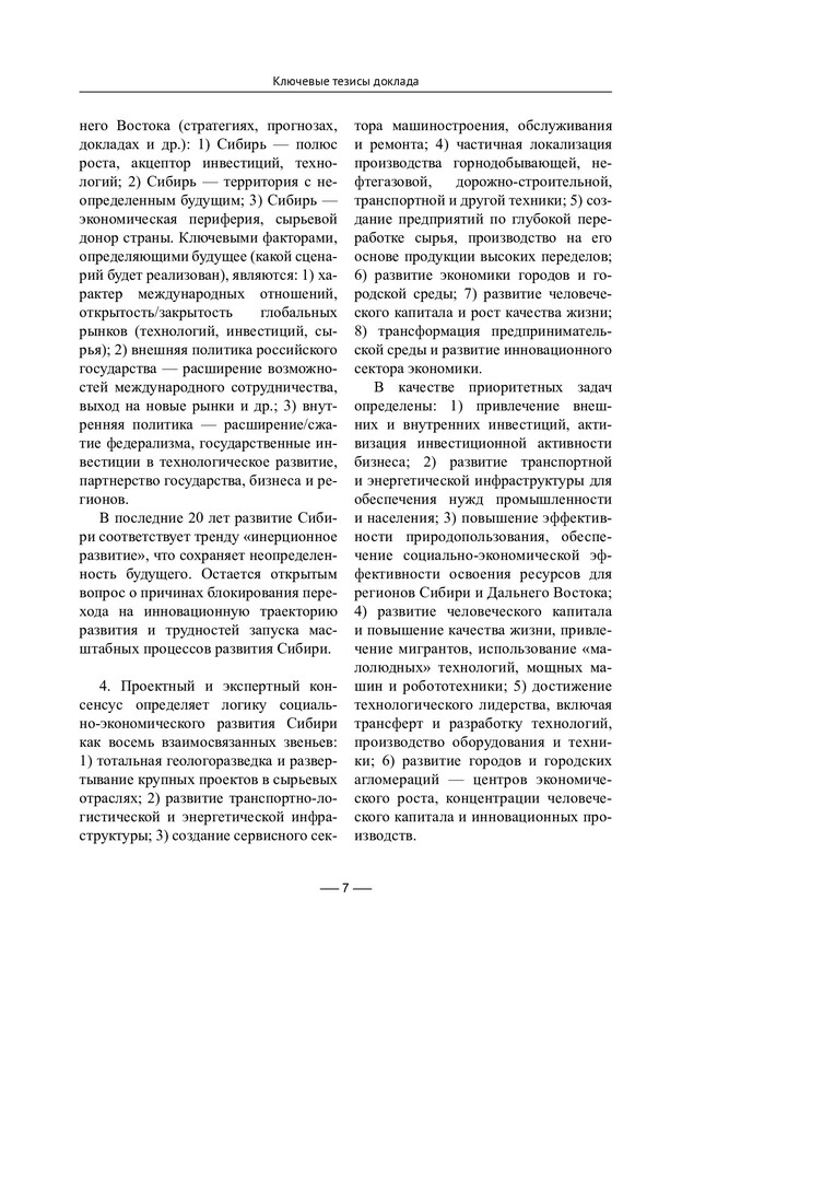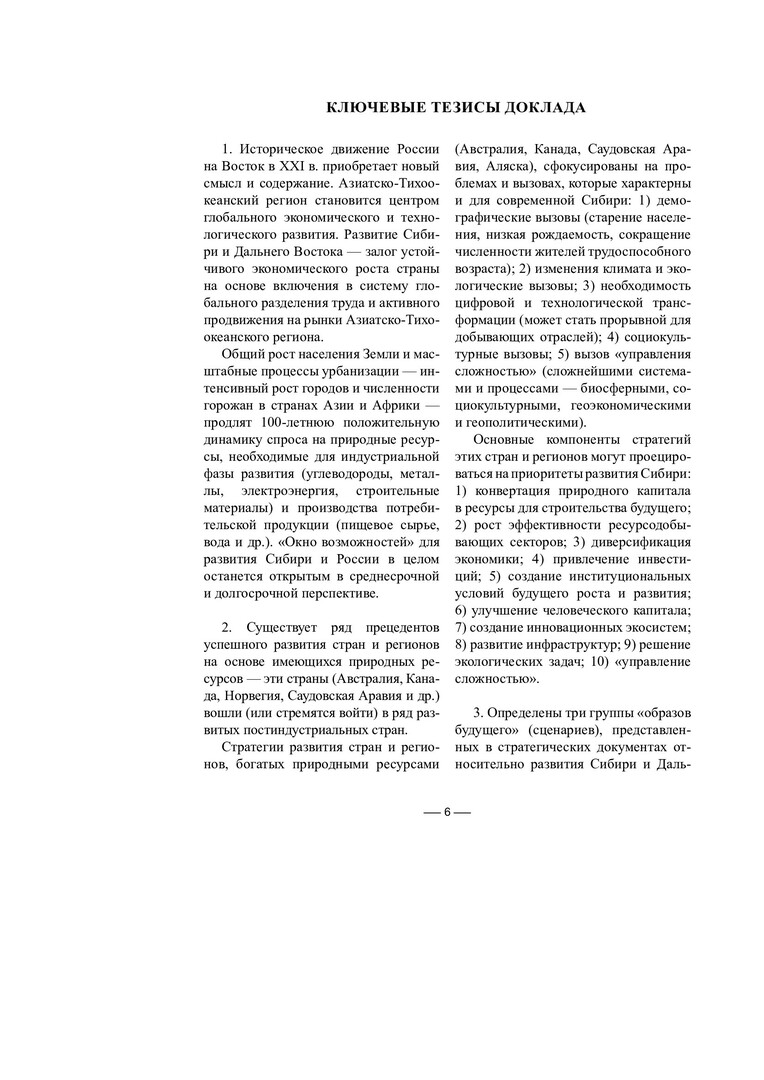 Будущее Сибири: анализ потенциала и стратегий развития : аналитический докладнаучное издание