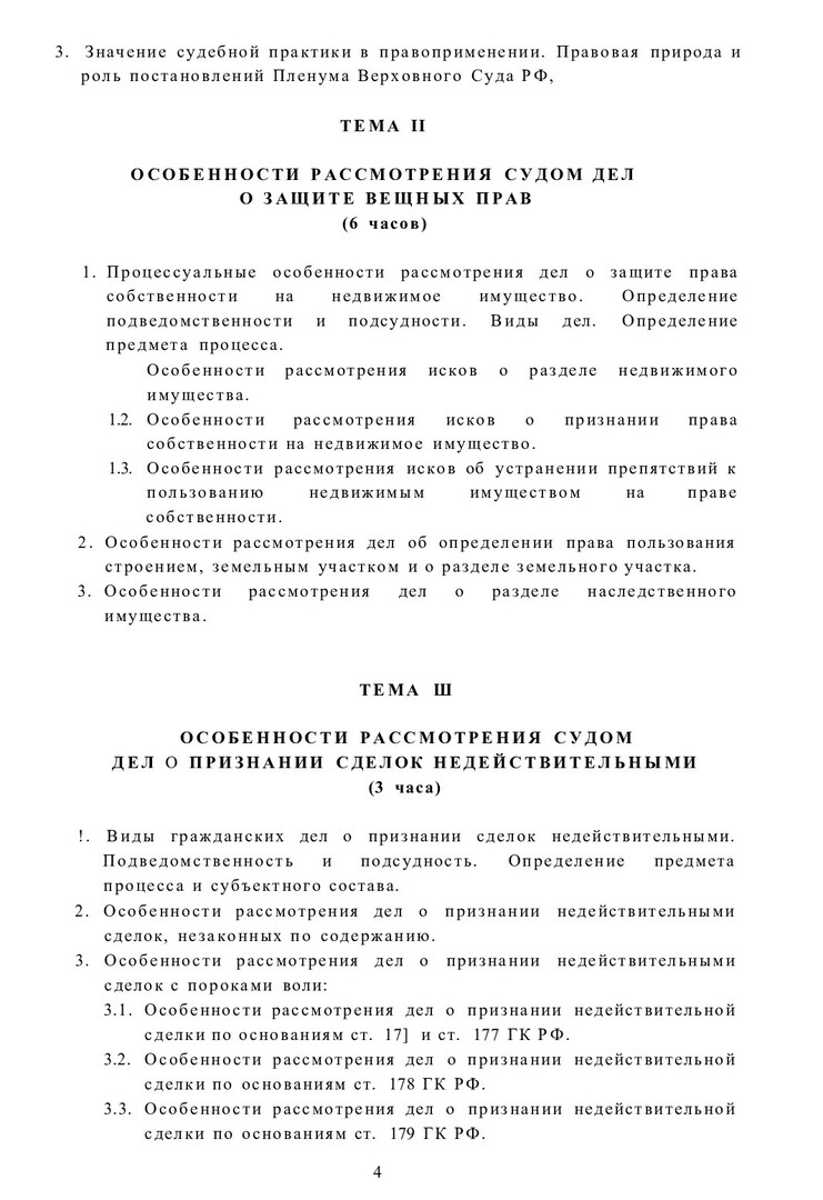 Ключевые слова:гражданское право, гражданский процесс, арбитражный процесс, признание сделок недействительными, защита чести и достоинства, защита авторских прав, возмещение вреда , восстановление на работе, материальная ответственность, раздел имущества, расторжение брака, защита прав несовершеннолетних, учебная программа