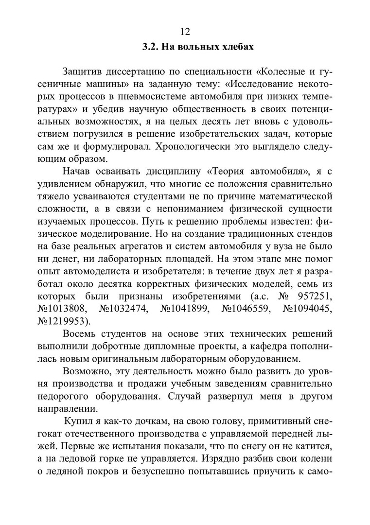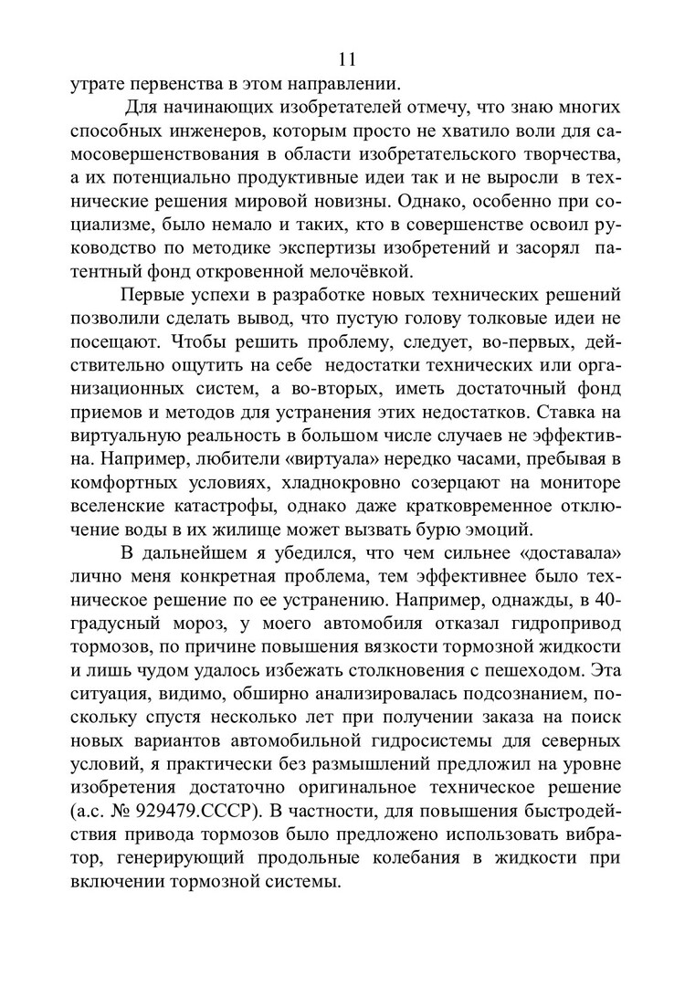 Аннотация: Изобрести новое устройство, способ, вещество – значит найти решение, к которому невозможно прийти в ходе обычного логического размышления, т.е. оно не следует явным образом из уровня техники. Как решить техническую задачу на уровне изобретения? Советы на эту тему дают философы и психологи, практики и теоретики. Число публикаций по этой проблематике, пожалуй, превышает перечень пионерских изобретений человечества. Автор не относит себя к выдающимся изобретателям, однако посчитал целесообразным на автобиографических примерах показать некоторые пути формирования творческой личности. Техническому творчеству нельзя научить, если нет соответствующих способностей, однако природными задатками наделено множество людей. Кто же из этого множества, на радость себе и благо общества, становится изобретателем? По мнению автора, это прежде всего зависит от ближайшего окружения человека в первые годы жизни и внимательности педагогов в период общего и профессионального обучения.