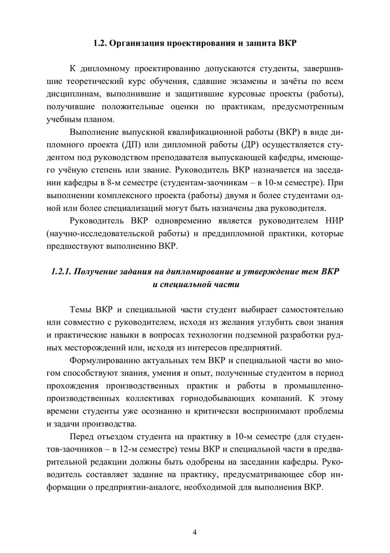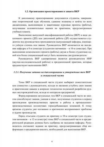 Методика подготовки и выполнения выпускной квалификационной работы по специализации "Подземная разработка рудных месторождений" : учебно-методическое пособие