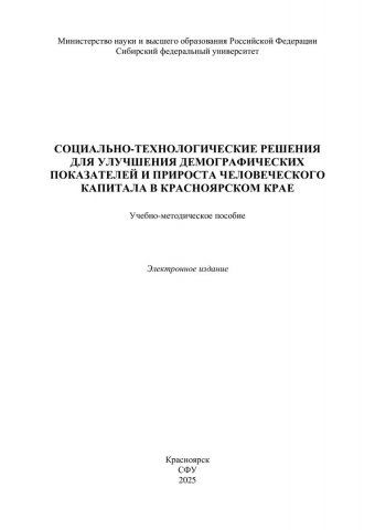 Социально-технологические решения для улучшения демографических показателей и прироста человеческого капитала в Красноярском крае : учебно-методическое пособие