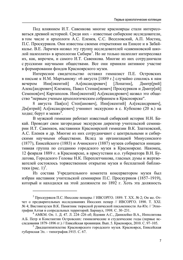 Ключевые слова: краеведческие музеи, археология Красноярского края, история, Красноярский краеведческий музей, археология, археологические экспедиции Красноярского краеведческого музея, археологические коллекции, археологические исследования Красноярского краеведческого музея, археологическая деятельность музея Красноярского краеведческого музея