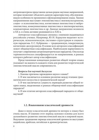 Аннотация: Рассмотрены основные этапы развития лингвистической науки, фундаментальные теоретические проблемы. Приведены таблицы, позволяющие систематизировать материал по изученным теоретическим вопросам, и задания, обеспечивающие необходимый уровень усвоения тем, а также способствующие самостоятельному научному поиску. Предназначено для магистрантов, обучающихся по направлению «Лингвистика». Может быть полезно студентам других направлений, а также широкому кругу читателей, интересующихся общетеоретическими проблемами лингвистики.