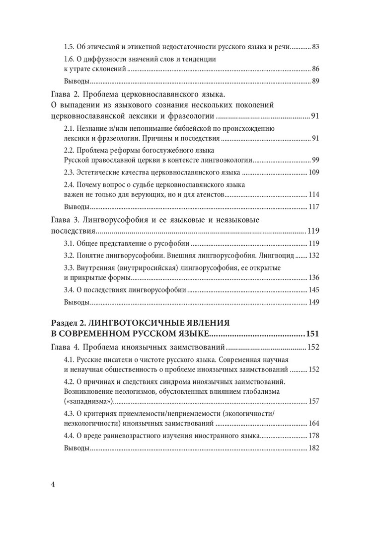Ключевые слова: лингвоэкология, экология языка, русский язык, языковое сознание носителей русского языка, заимствования языковые, жаргонизмы, эколингвистика, лингвистическая травматология, лексика русского языка, культура речи, этическая семантика, стилистические утраты русского языка, псевдоустаревшие слова, современный русский язык, церковнославянский язык, библейская лексика и фразеология, богослужебный язык Русской православной церкви, лингворусофобия, иноязычные заимствования, вульгаризация русской речи, лингвоцинизмы, языковое расширение, лингвоперверсии, лексические новации, языковая креативность, лингвоэкологическая терминология