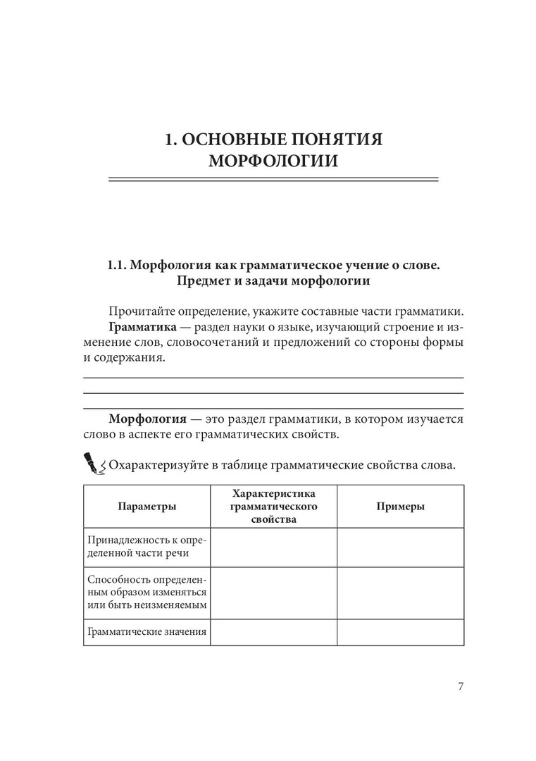 Морфология современного русского языка : рабочая тетрадь