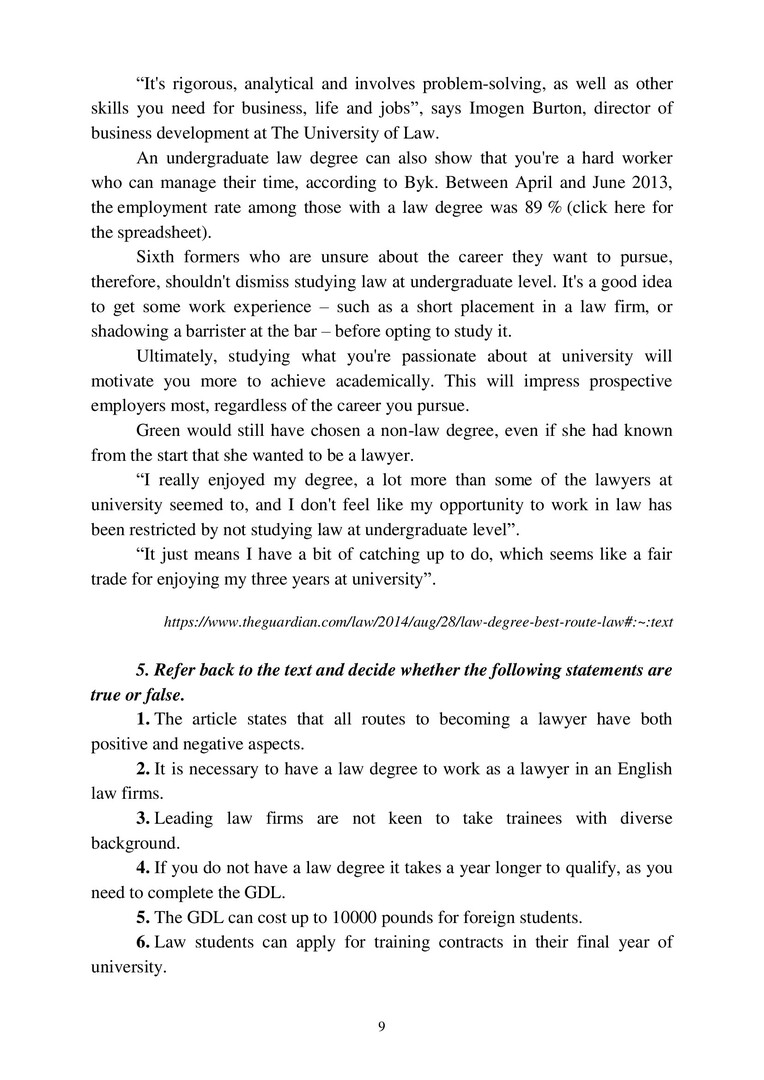 Аннотация:Содержит материалы, обеспечивающие комплексное овладение лингвистическими социолингвистическим, прагматическими и профессиональными коммуникативными компетенциями необходимых в сфере профессиональной деятельности юриста. Предназначено для организации образовательного процесса по программам бакалавриата 0.03.01 «Юриспруденция» (профиль 40.03.01.31 «Международное и иностранное право»).