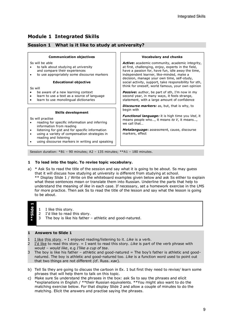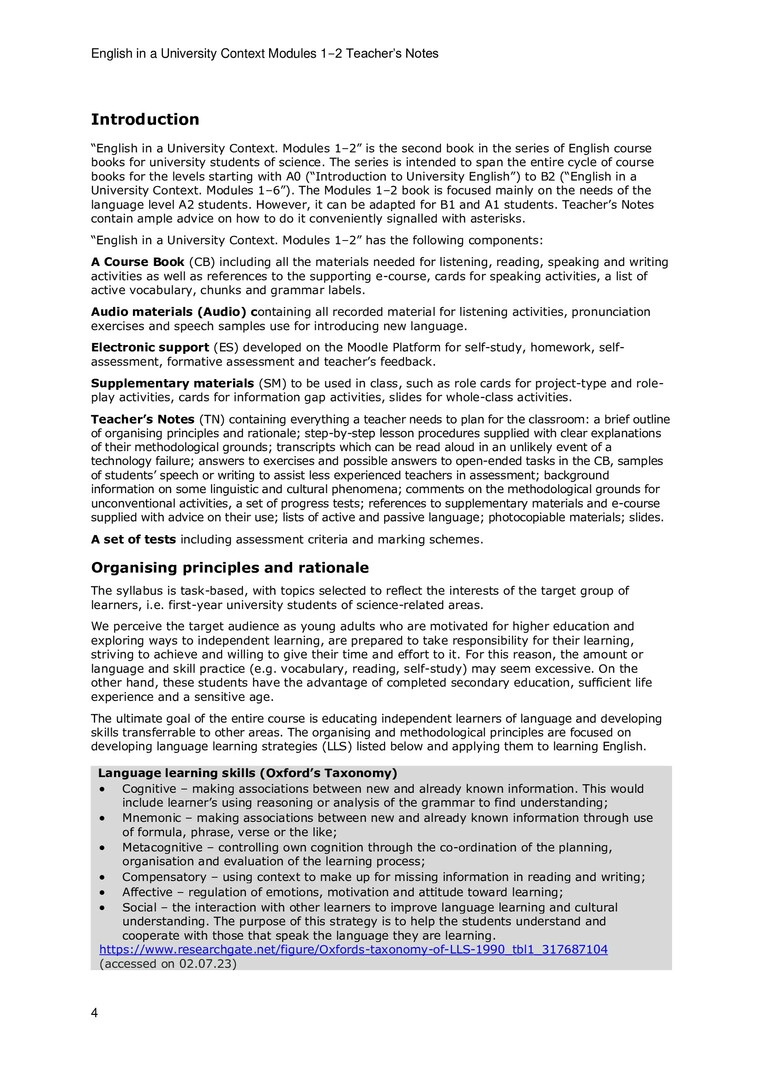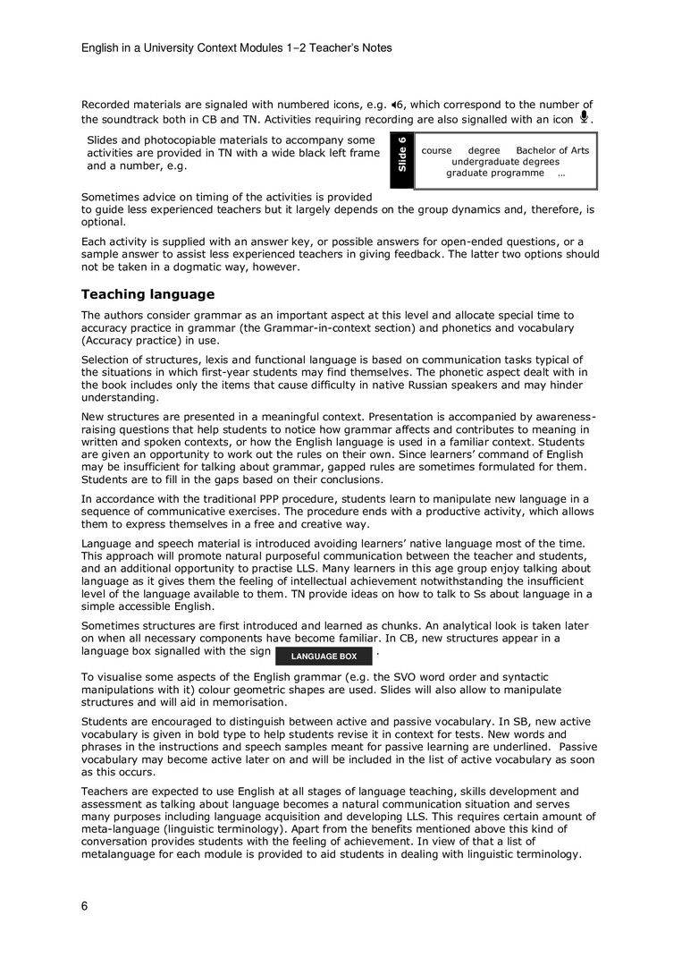 English in a University Context. Modules 1-2. Teacher's Notes : учебное пособие