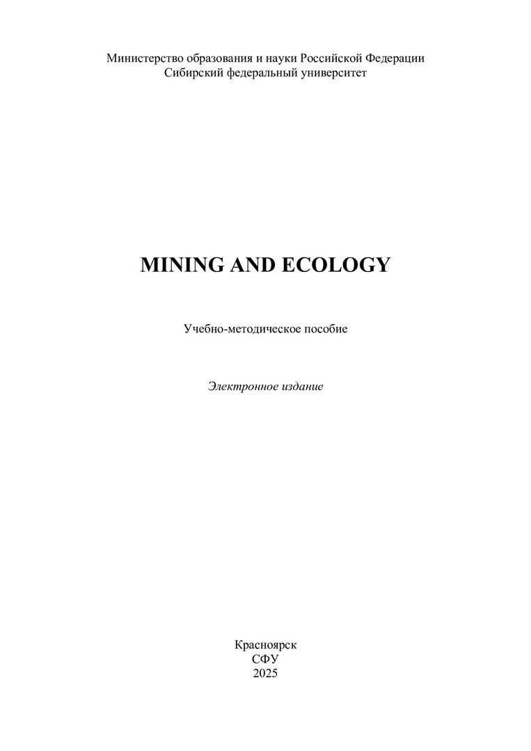 Библиографическое описание: Mining and Ecology : учебно-методическое пособие / Сибирский федеральный университет, Институт филологии и языковой коммуникации ; сост.: Н. В. Бизюков, А. И. Богданова, О. И. Денисенко. - Электрон. текстовые дан. (pdf, 1,1 Мб). - Красноярск : СФУ, 2025 (2025-07-02). - 63 с. - Загл. с титул. экрана. - Библиогр.: с. 63. - Изд. № 2025-24657 : Б. ц. - Текст : электронный.