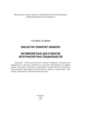 Английский язык для студентов автотранспортных специальностей. English for transport engineers. : учебник для студентов, обучающихся по направлениям подготовки "Наземные транспортно-технологические комплексы", "Эксплуатация транспортно-технологических машин и комплексов", "Наземные транспортно-технологические средства"