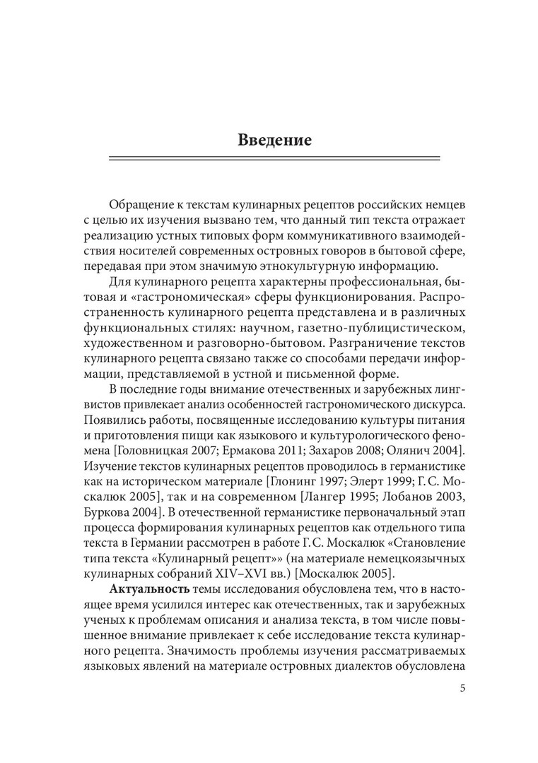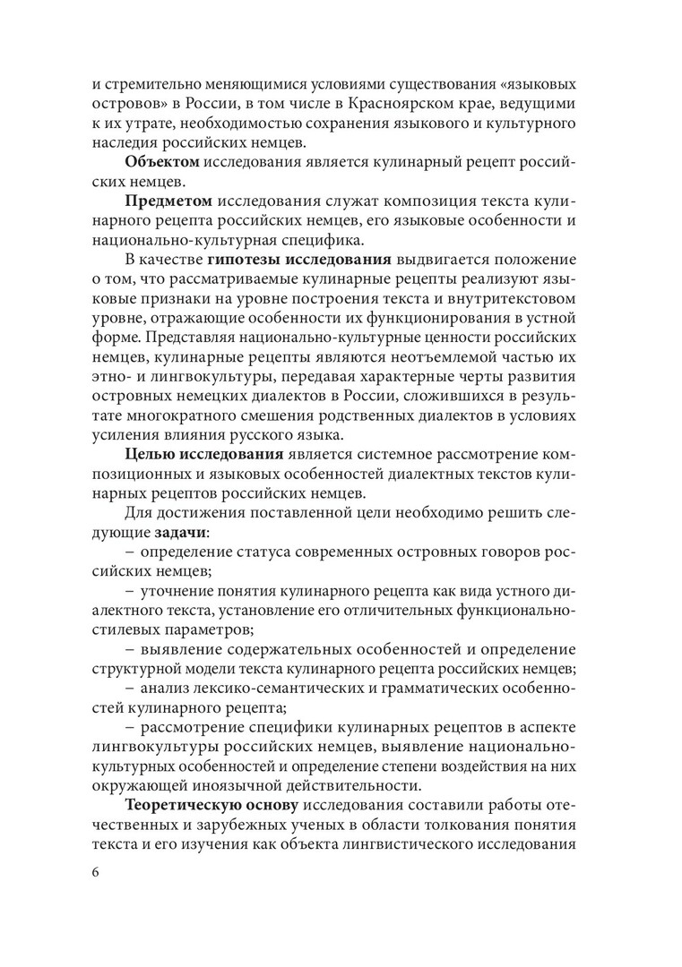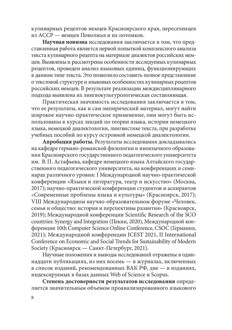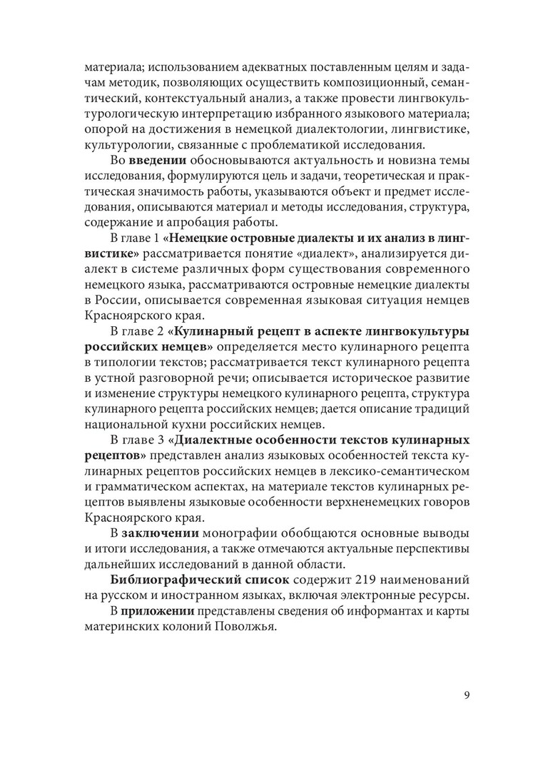Общие структурные параметры и языковые особенности текста кулинарного рецепта (на материале диалектов российских немцев) : монография