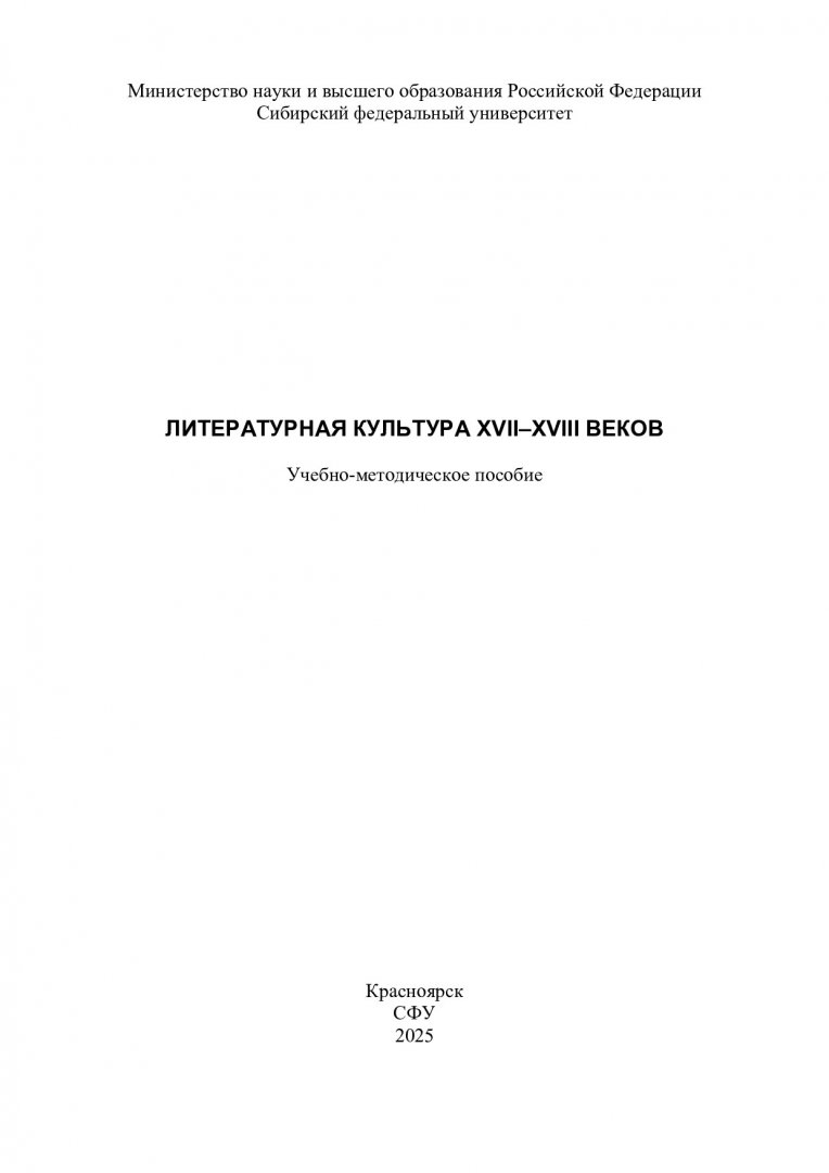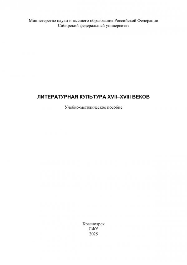 Библиографическое описание:Литературная культура XVII-XVIII вв. : учебно-методическое пособие / Сибирский федеральный университет ; сост. Ю. Н. Перепелица. - Электрон. текстовые дан. (pdf, 0.5 Мб). - Красноярск : СФУ, 2025 (2025-12-08). - 40 с., 6.0 усл. печ. л. - Загл. с титул. экрана. - Электрон. версия печ. публикации . - 100 экз. - Изд. № 2025-25690 : Б. ц. - Текст : электронный.